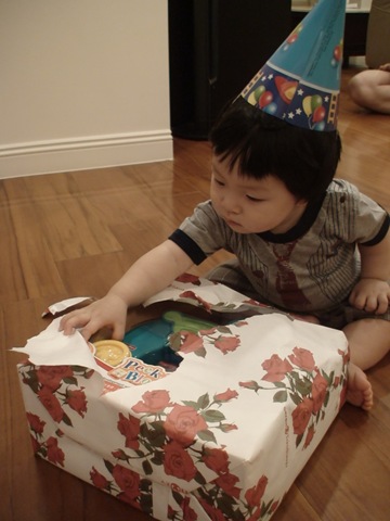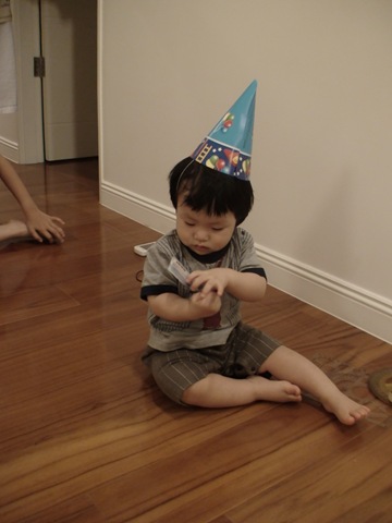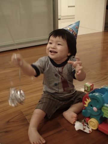 Mami was busy recording the video throughout the party. Then she realized that she needed one. But Changton still wanted to play. So this was the best shot she got from the birthday boy.