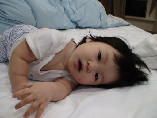 Changton loves to be in bed with his dad and mom because it is spacious, soft and cozy, unlike his baby crib. However, don't ever think that our baby size buddy only needs a baby size space. Each and every night, Changton occupies half of our king bed size!!